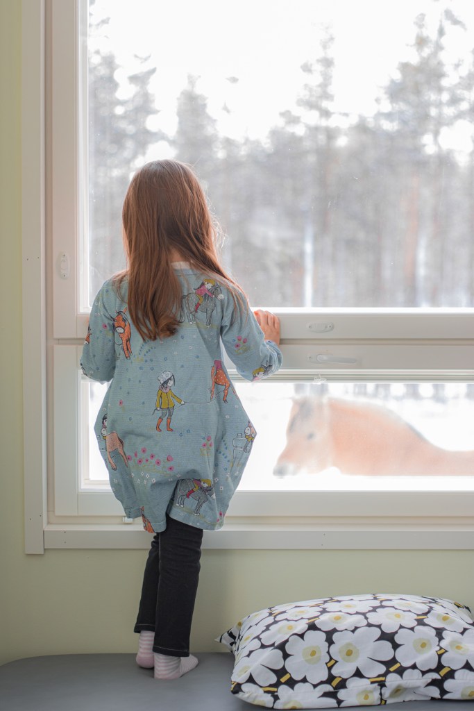 Meillä pääsee metsään, pihapiirissä kasvaa mustikat, puolukat, korvasienet ja jopa hillat. Kesäisin viljelemme jonkinverran hyötykasveja. Rakennamme kohopenkit hevosen lantaa sekä heinää hyödyntäen ja kesäisin siellä kasvaa isoja kesäkurpitsoja kukkien lisäksi.