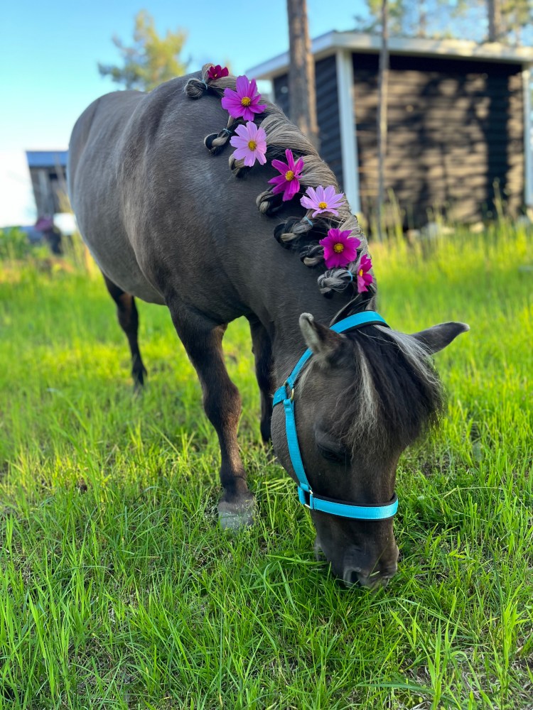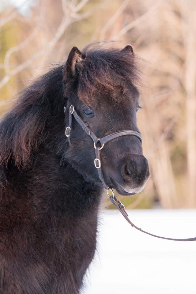 On syntynyt 2020 ja tuli meille vuotiaana varsana ja sai meillä kutsumanimekseen Karkki. Karkki on shetlanninponi. Kiltti ja seurallinen musta samettiturpa.